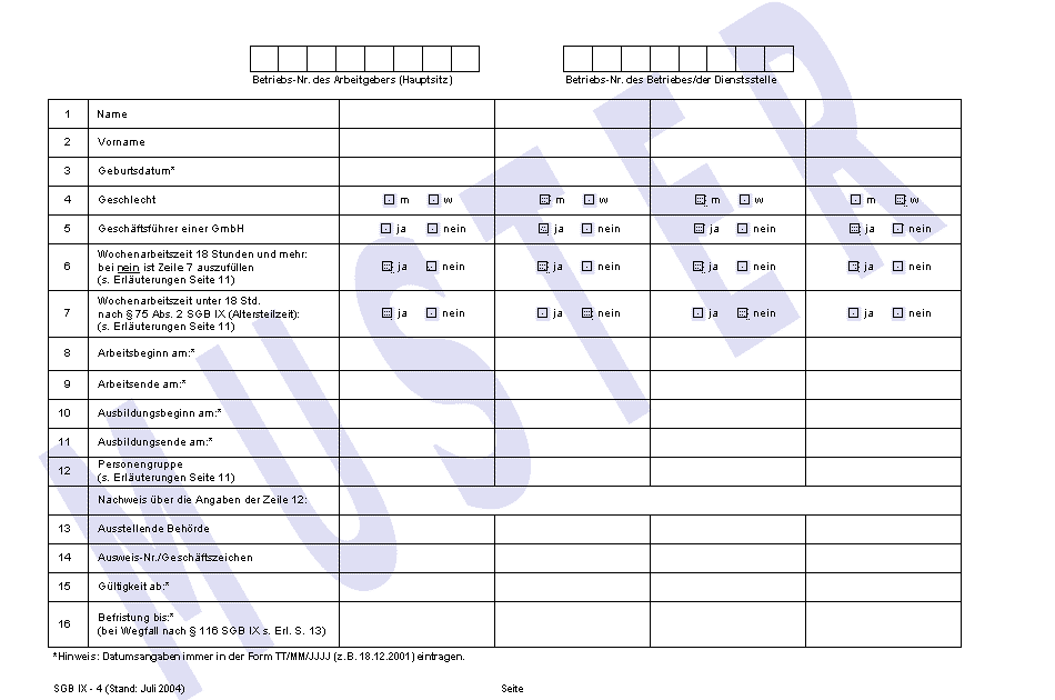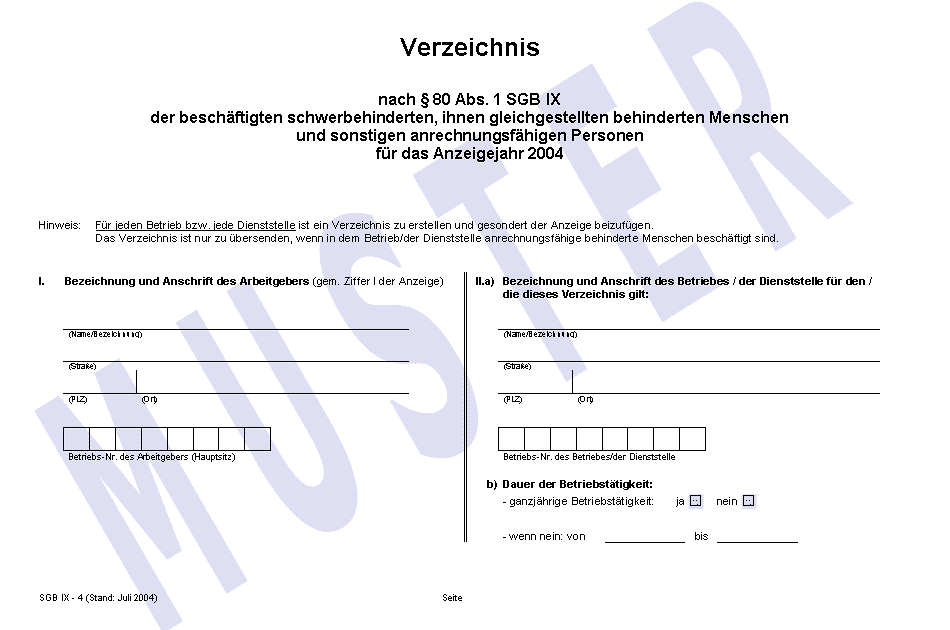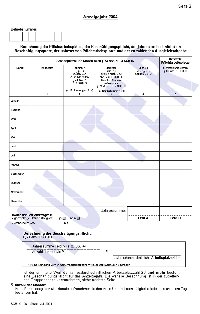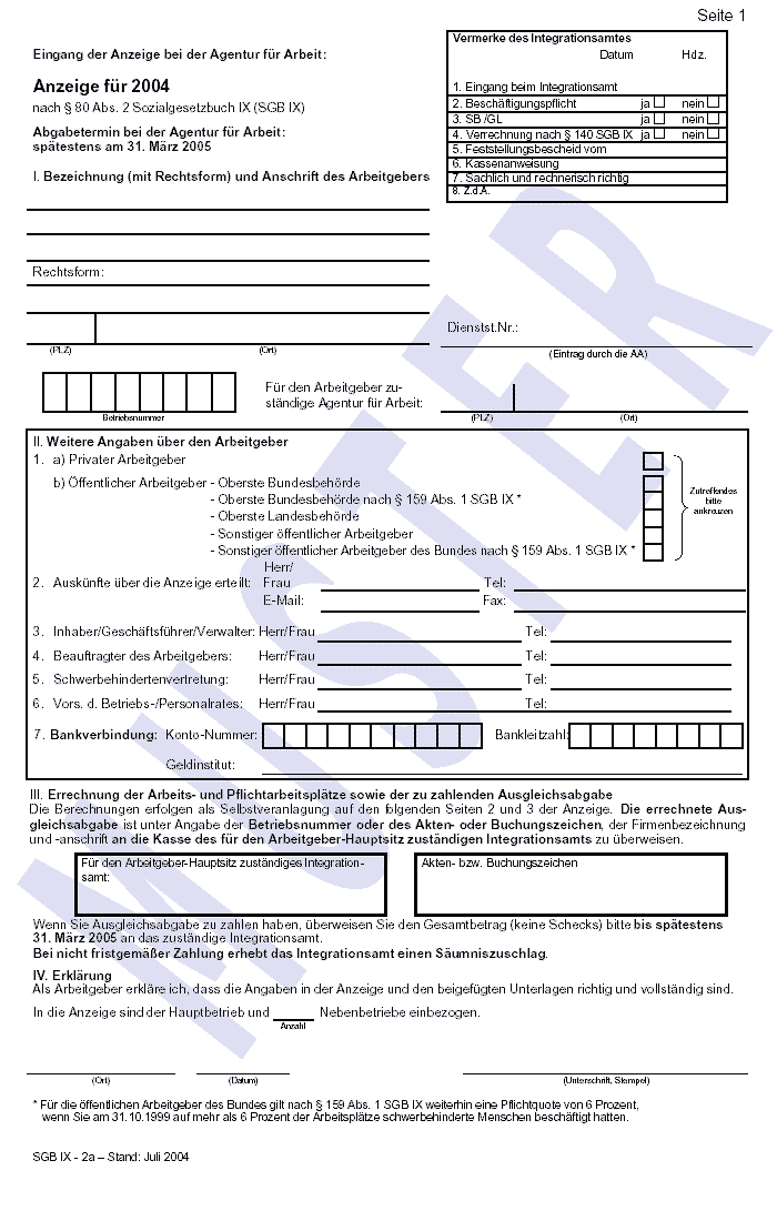 Für das Anzeigejahr 2004 entfällt eine separate Ausfertigung der Formulare für das Integrationsamt.